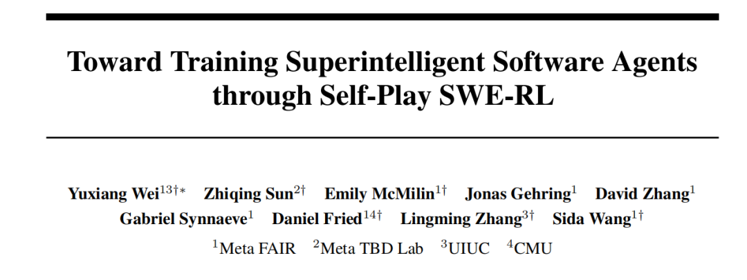 来自Meta、伊利诺伊大学厄巴纳-香槟分校的研究团队提出 Self-play SWE-RL(SSR),作为软件工程智能体训练范式的第一步。该方法对数据假设的要求极低,仅需访问包含源代码和已安装依赖项的沙盒化代码仓库,无需任何人工标注的问题或测试用例。